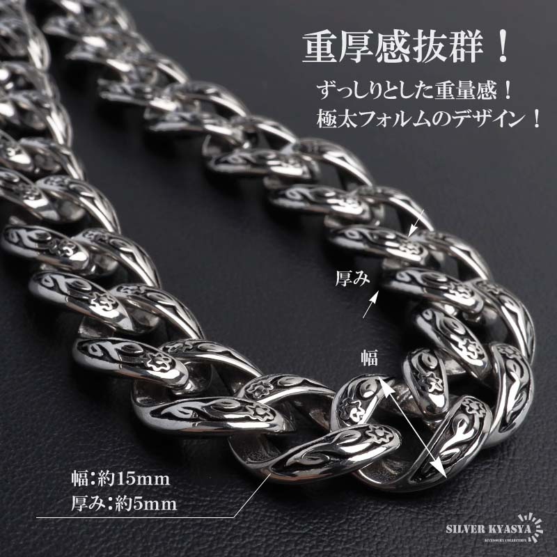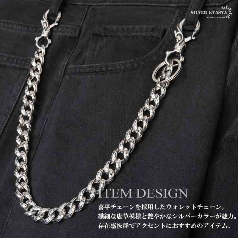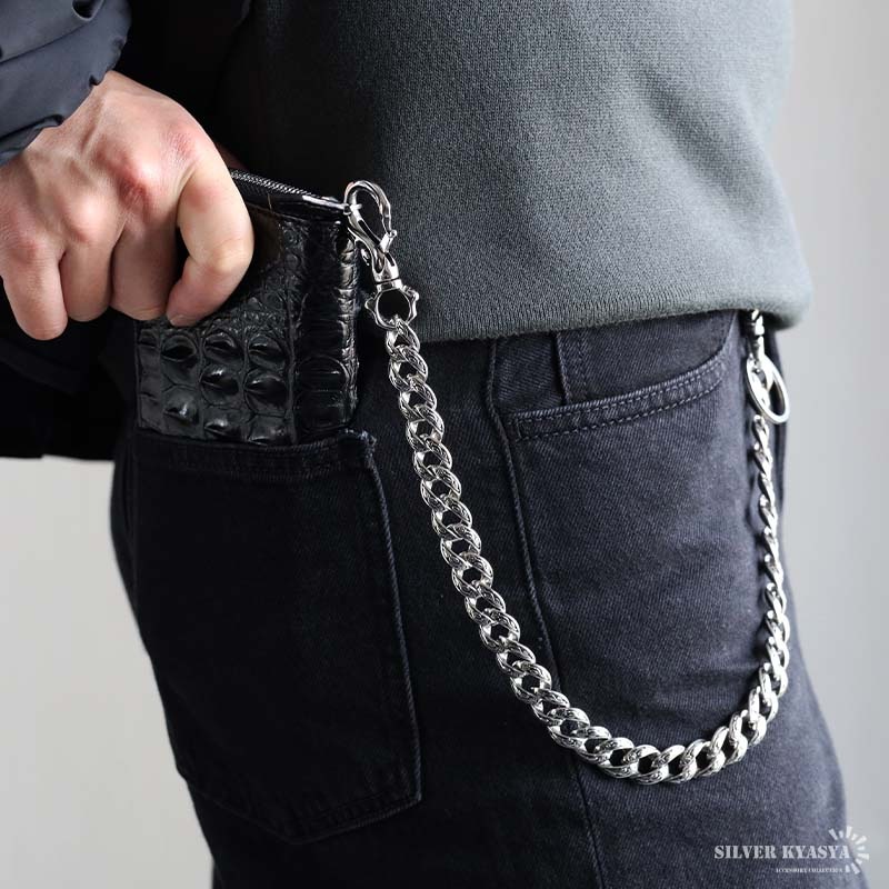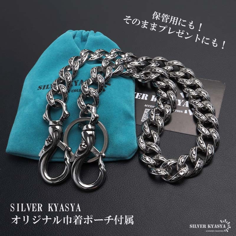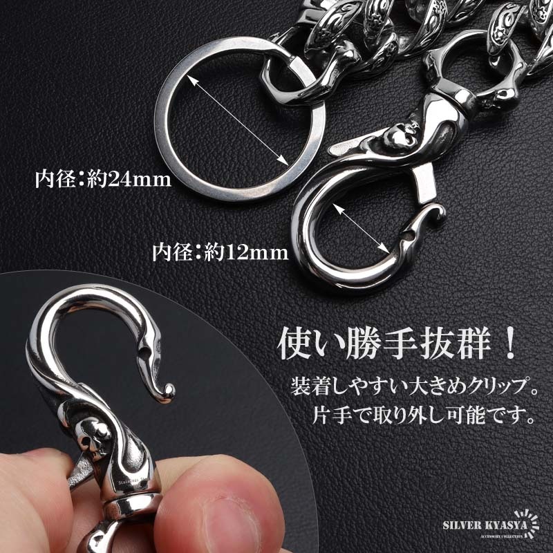 ■ITEM DESIGN 喜平チェーンを採用したウォレットチェーン。繊細な唐草模様と艶やかなシルバーカラーが魅力的。存在感抜群でアクセントにおすすめのアイテム。 ■使い勝手抜群!2クリップ 着脱しやすい大きめのクリップ。サイフ側、ベルトループ側どちらも片手でスムーズに取り外しできます。 ■ハイクオリティな316L! 留め具は頑丈でお手入れも簡単なステンレス316L製!錆びることなくサッと拭くだけメンテも簡単!金属アレルギーが出にくいのもポイントです。 | |