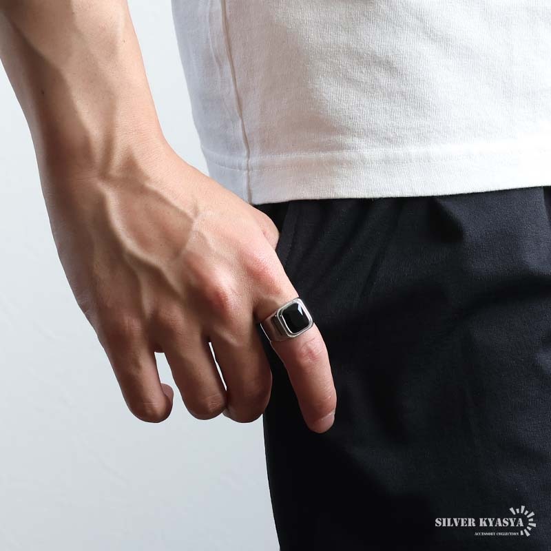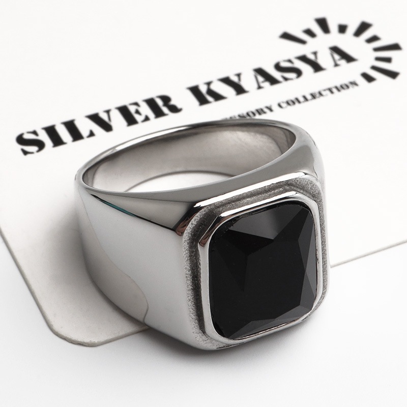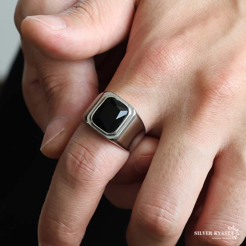ステンレス スクエアストーン つや消し印台リング 3タイプ [r944]