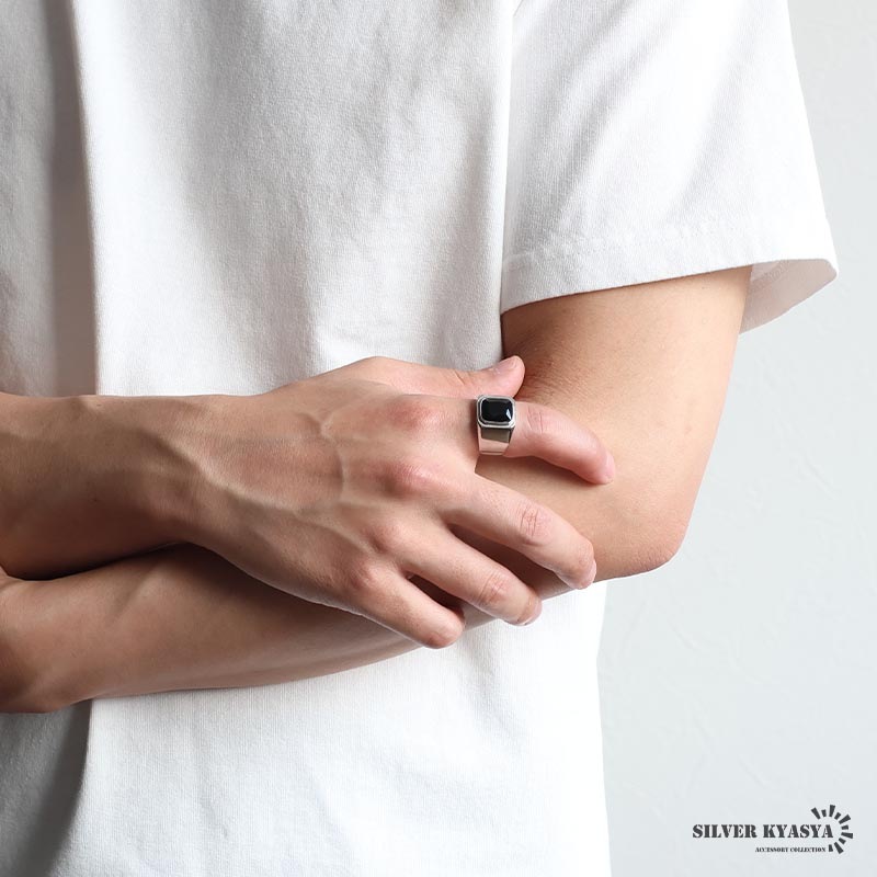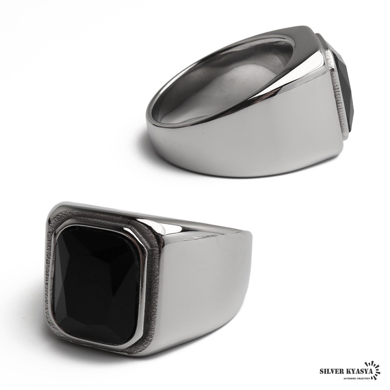 ステンレス スクエアストーン 細身印台リング 4タイプ [r945]