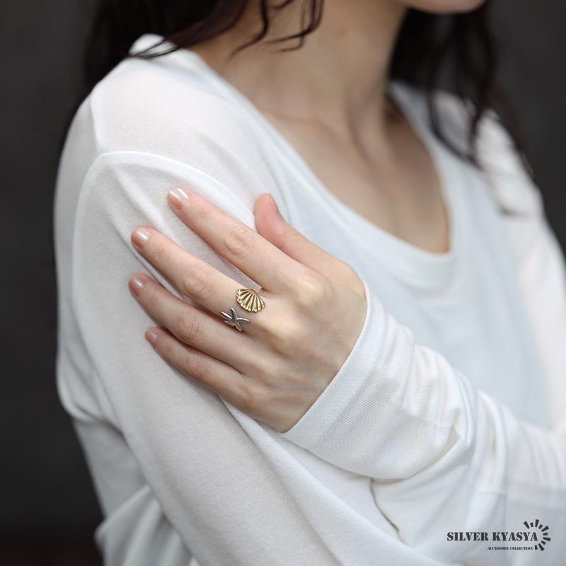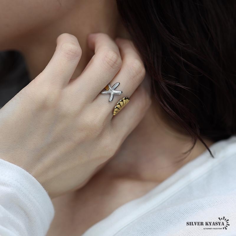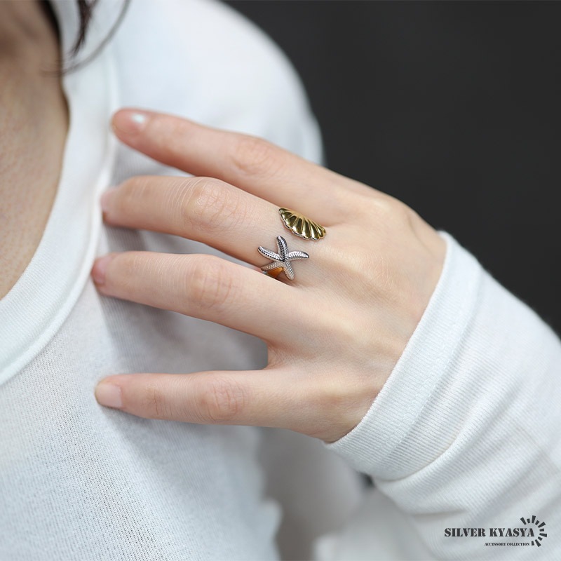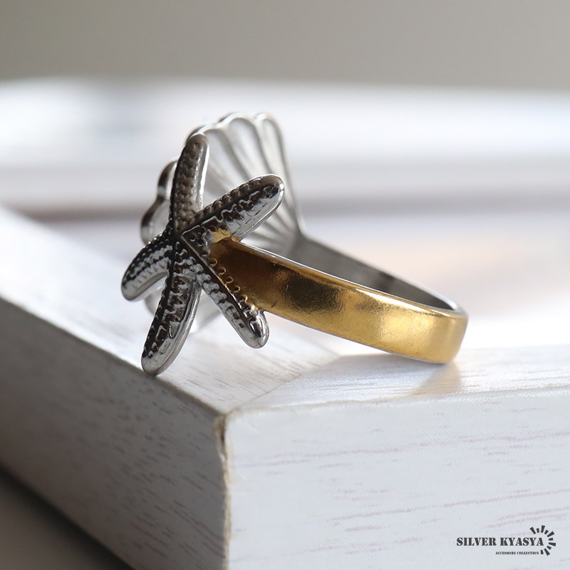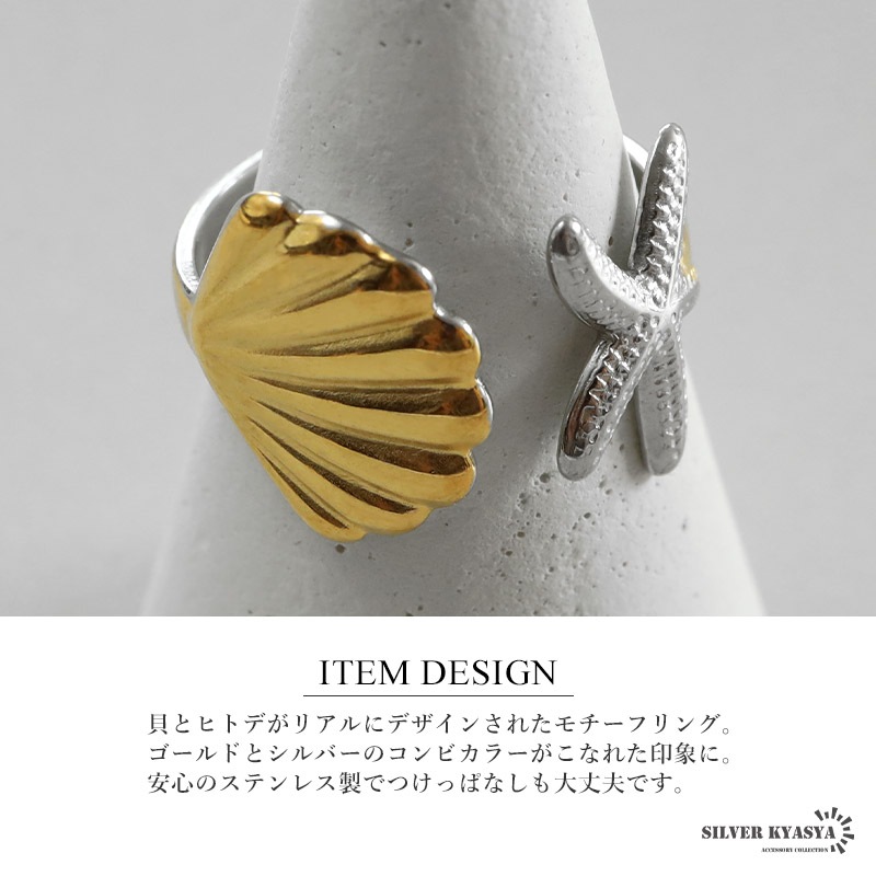 ■ITEM DESIGN 貝とヒトデがリアルにデザインされたモチーフリング。ゴールドとシルバーのコンビカラーがこなれた印象に。安心のステンレス製でつけっぱなしも大丈夫です。 ■安心のステンレスアイテム 頑丈でお手入れも簡単なステンレス製アクセサリー。変色、錆びることもなくサッと拭くだけメンテもかんたん。金属アレルギーが出にくいのもポイントです。 | |