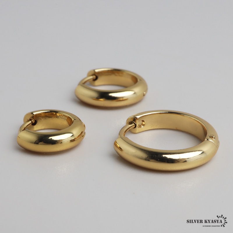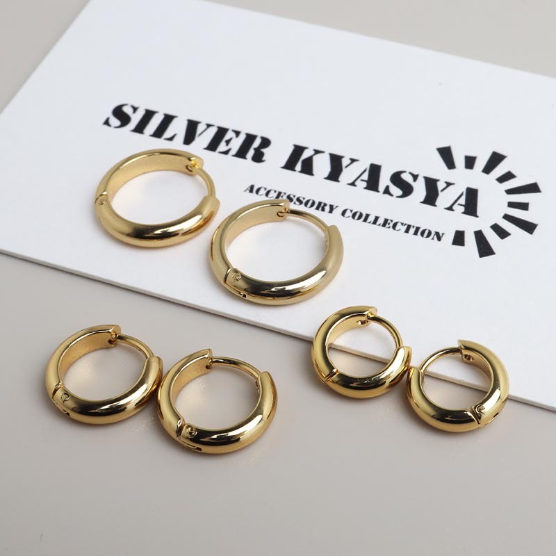ステンレス 「ころん」としたフォルムがかわいいフープピアス。2色 5サイズ [e498]