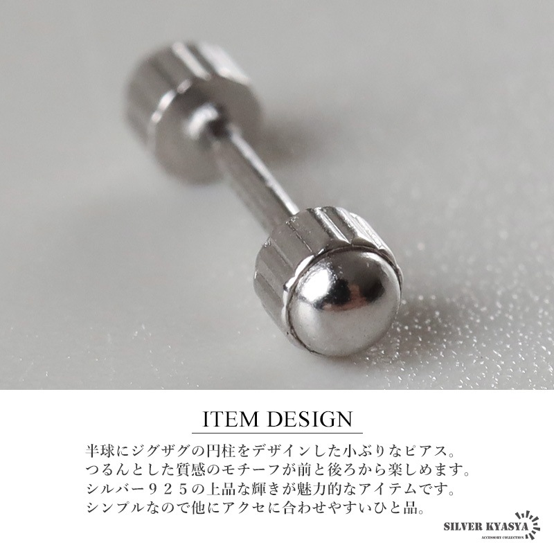 ■ITEM DESIGN 半球にジグザグの円柱をデザインした小ぶりなピアス。つるんとした質感のモチーフが前と後ろから楽しめます。シルバー925の上品な輝きが魅力的なアイテムです。シンプルなので他にアクセに合わせやすいひと品。 ■大人のシルバー925 大人の魅力あふれるシルバー925素材を採用。「925」とは銀の含有率(純度)92.5%を示し、一般的に純銀として扱われます。サビや劣化等がほとんどなく金属アレルギーも出にくいとされており、アクセサリーとしての実用性もある金属です。 | |