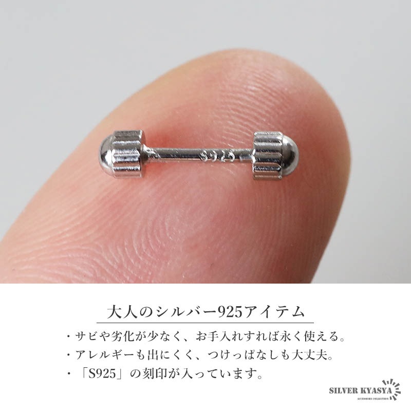 シルバー925 小さなフォルムが特徴的な円柱型のスタッドピアス。 [es505]