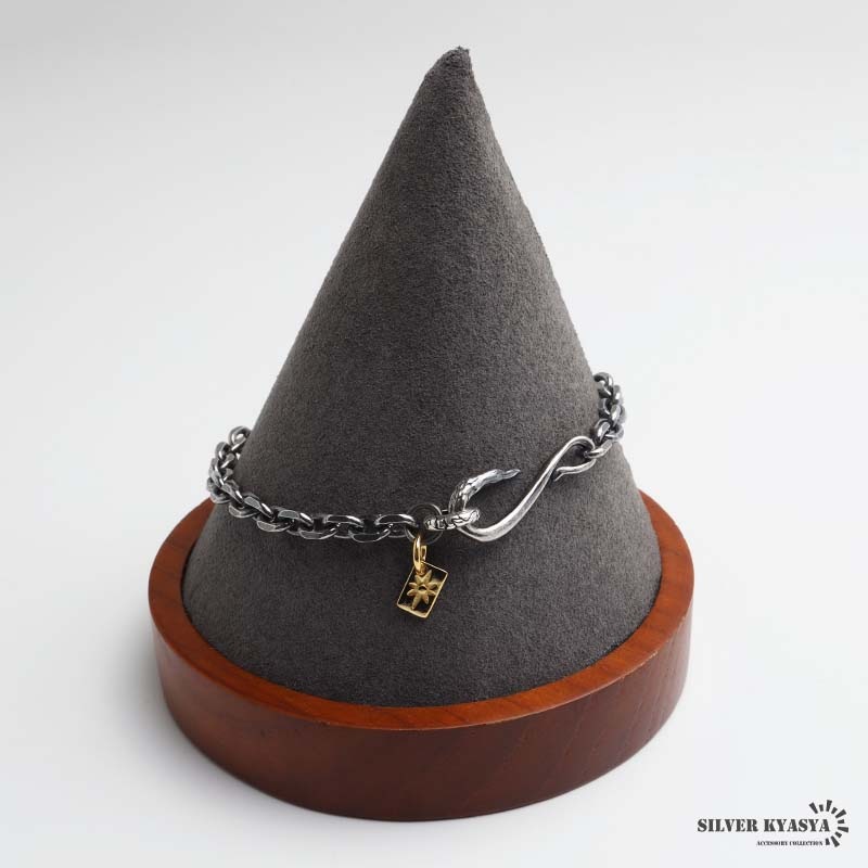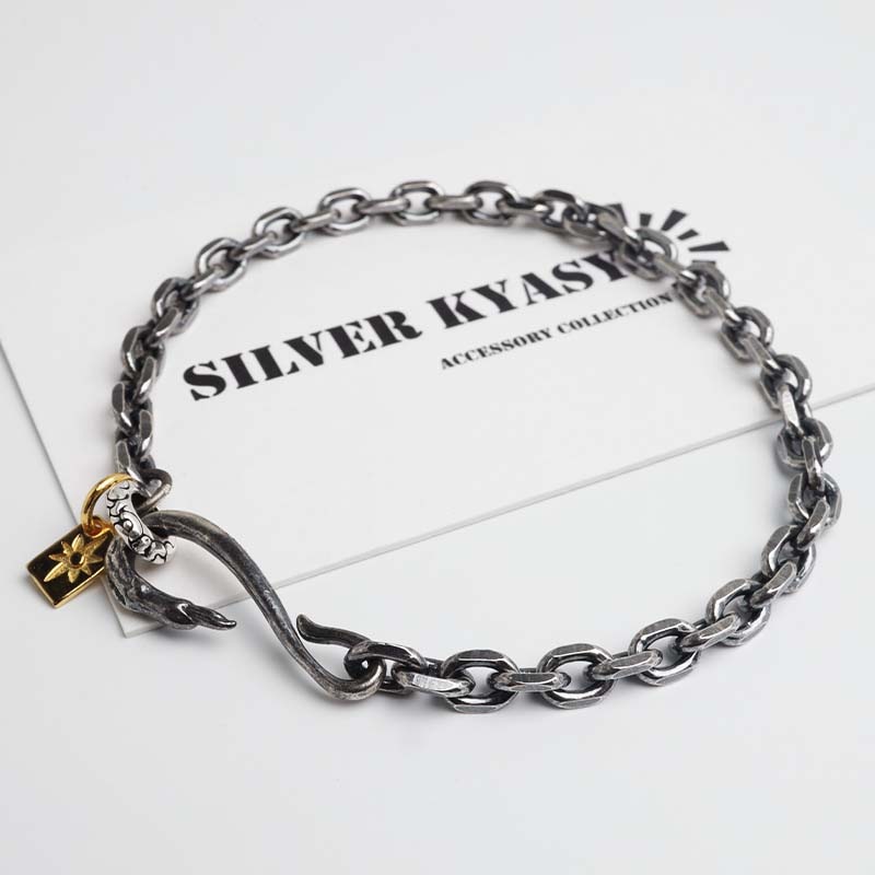 ■ITEM DESIGN 丁寧な4面カットを施した定番のあずきチェーンブレスレット。太陽メタルチャームとイーグルを模したフックが魅力的なアクセントに。チェーンに厚みがしっかりとあるので、高密度で重厚感のある仕上がり。燻し仕上げによるアンティーク感が普段のコーデに馴染みやすいです。 ■大人のシルバー925 大人の魅力あふれるシルバー925素材を採用。「925」とは銀の含有率(純度)92.5%を示し、一般的に純銀として扱われます。サビや劣化等がほとんどなく金属アレルギーも出にくいとされており、アクセサリーとしての実用性もある金属です。 | |