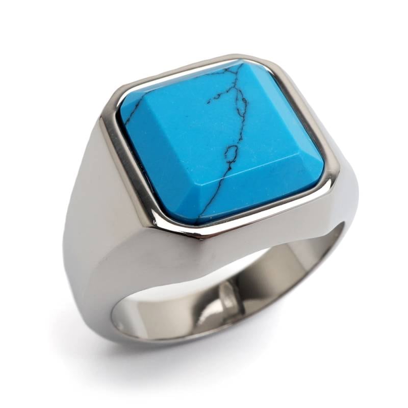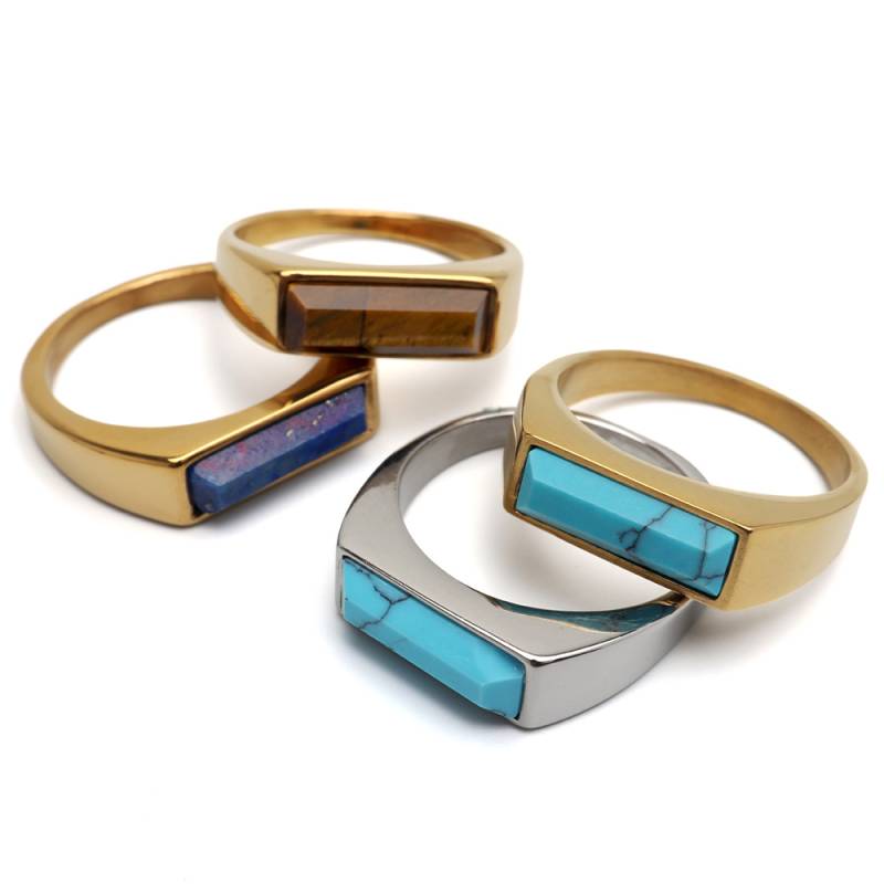 ステンレス スクエアストーン 細身印台リング 4タイプ [r945]