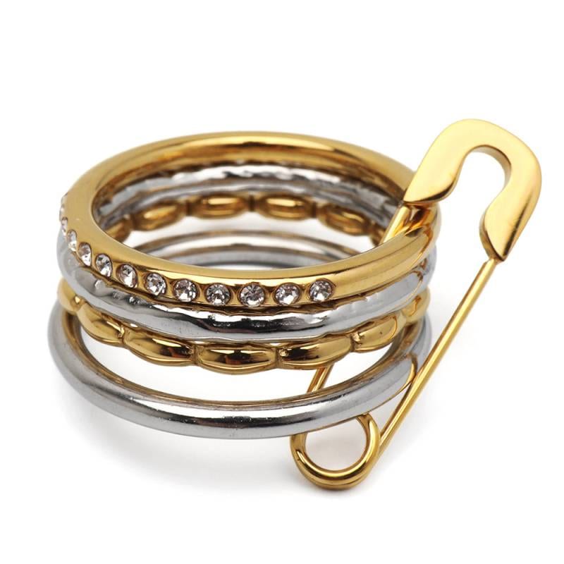 ステンレス 安全ピン×4連リングラインストーン付き [r949]