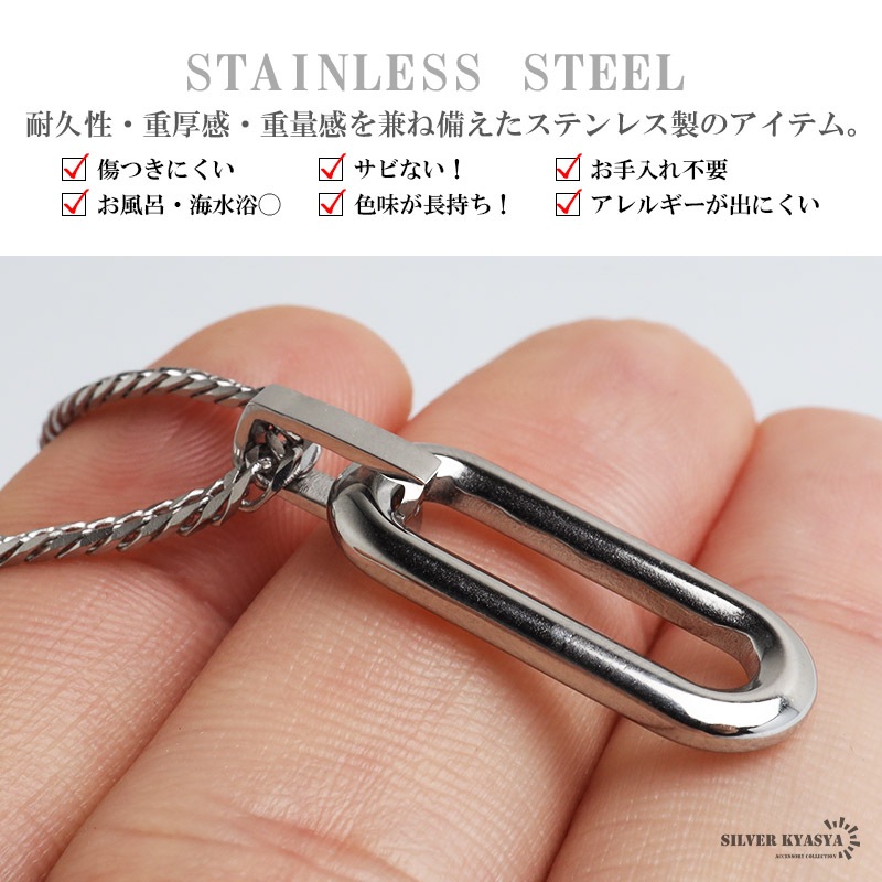 ■ITEM DESIGN オーバルリンクのーコマをペンダントにしたネックレス。シンプルかつ洗練されたデザインが魅力的なアイテムです。ステンレス製なのでつけっぱなしでも問題ございません。カラーは全2色からお選びいただけます。 ■安心のステンレスアイテム 頑丈でお手入れも簡単なステンレス製アクセサリー。錆びることもなくサッと拭くだけメンテもかんたん。金属アレルギーが出にくいのもポイントです。 | |