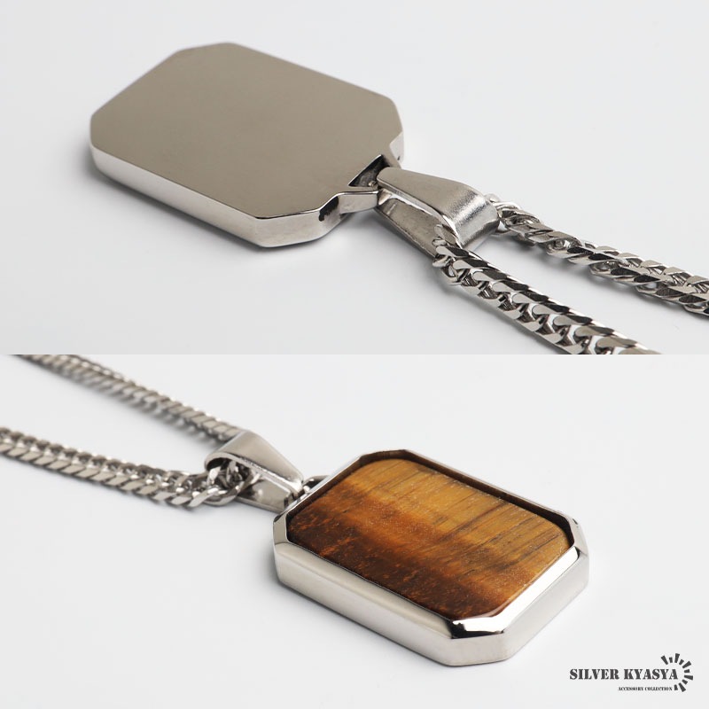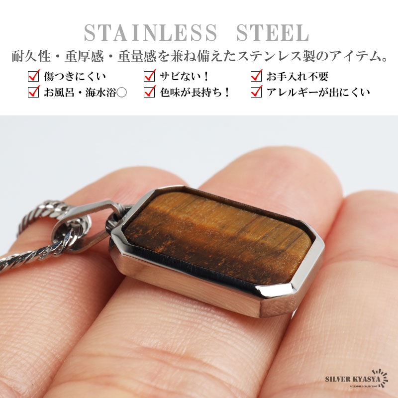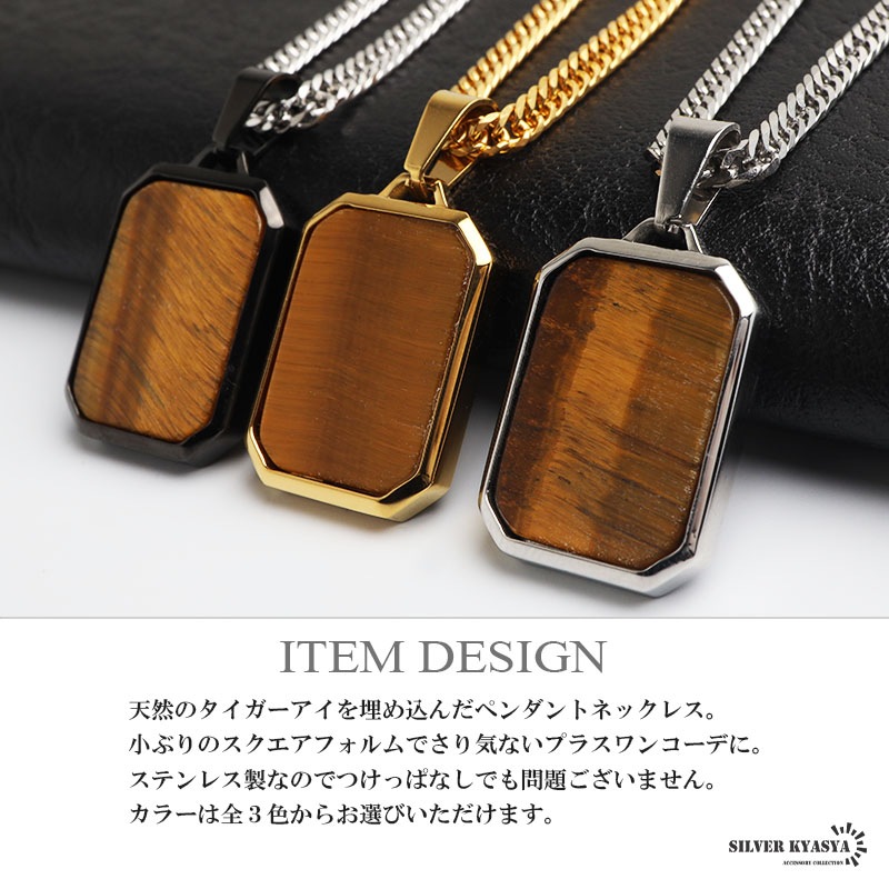 ■ITEM DESIGN 天然のタイガーアイを埋め込んだペンダントネックレス。小ぶりのスクエアフォルムでさり気ないプラスワンコーデに。ステンレス製なのでつけっぱなしでも問題ございません。カラーは全3色からお選びいただけます。 ■安心のステンレスアイテム 頑丈でお手入れも簡単なステンレス製アクセサリー。錆びることもなくサッと拭くだけメンテもかんたん。金属アレルギーが出にくいのもポイントです。 | |