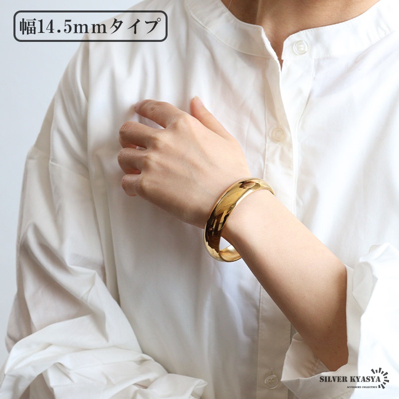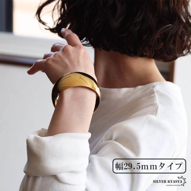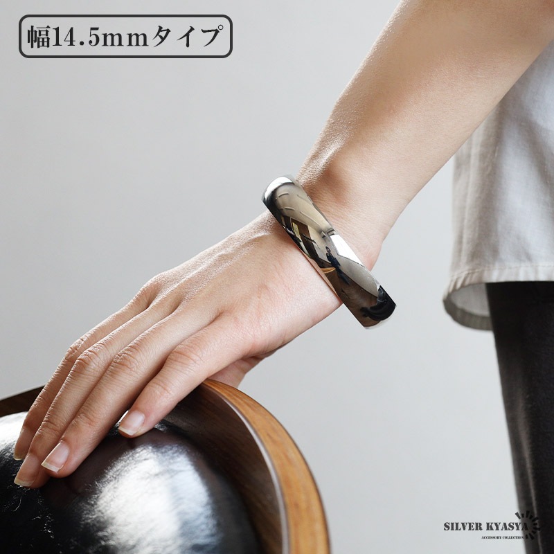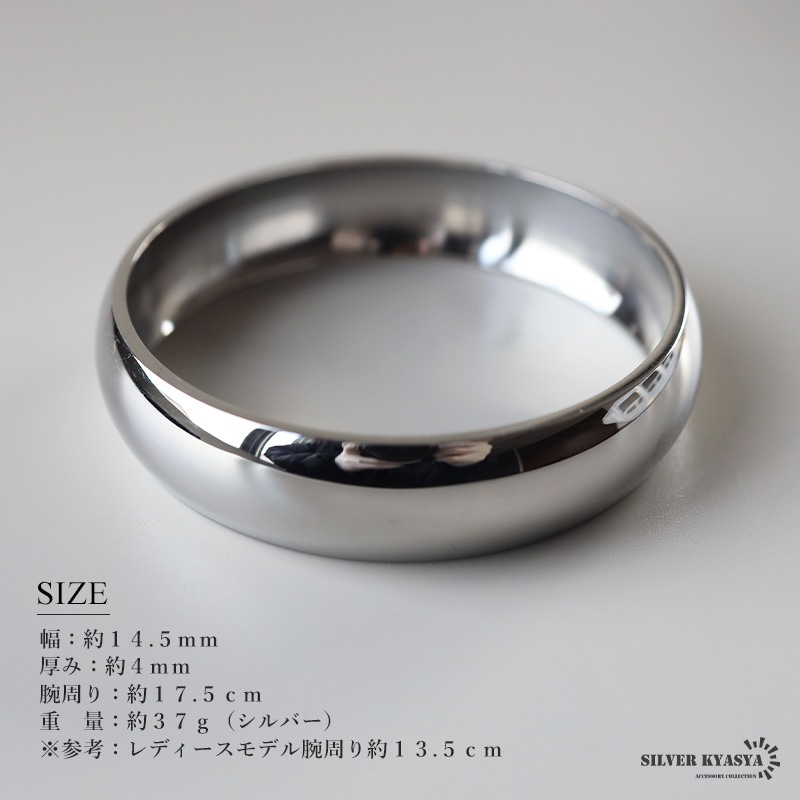 | | 9.5mmタイプ:幅約9.5mm、厚み約4mm、腕周り約17.5cm、重量約34g(シルバー)※参考レディースモデル腕周り約13.5cm 14.5mmタイプ:幅約14.5mm、厚み約4mm、腕周り約17.5cm、重量約37g(シルバー)※参考レディースモデル腕周り約13.5cm 29.5mmタイプ:幅約29.5mm、厚み約5mm、腕周り約18cm/約19cm、約66g/約72g(ゴールド)※参考レディースモデル腕周り約14.5cm |
