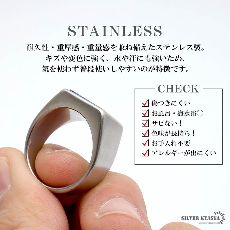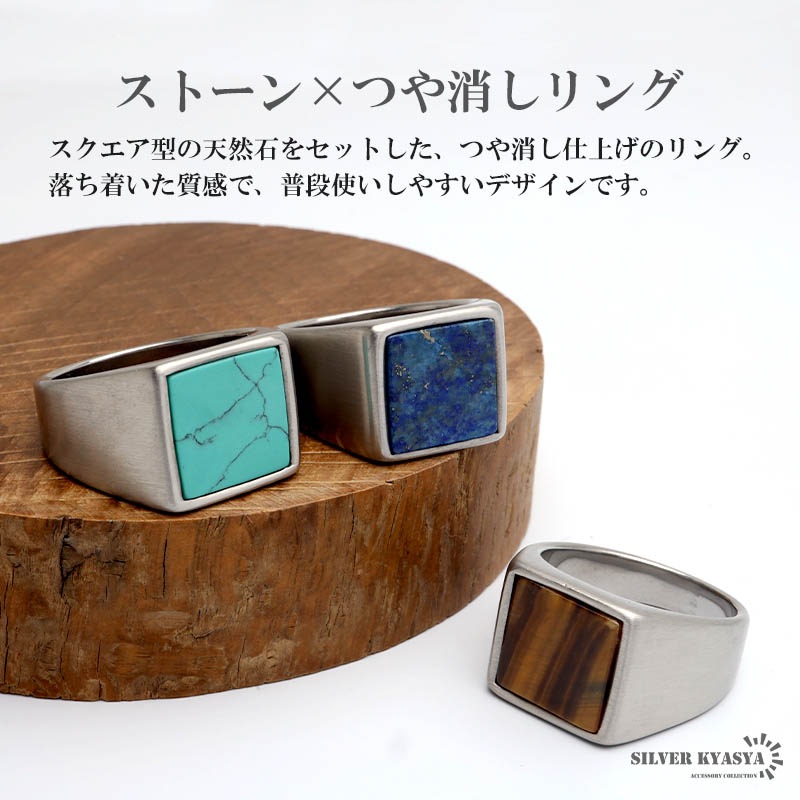 ■特大ストーン×つや消し印台リング スクエア型の天然石をセットした、つや消し仕上げの印台リング。落ち着いた質感で普段使いしやすいデザインです。3タイプから選べます。 ■ステンレス製アイテム 耐久性・重厚感・重量感を兼ね備えたステンレス製。傷や変色に強く水や汗にも強いため、気を使わず普段使いしやすいのが特徴です。 | |