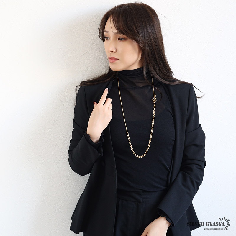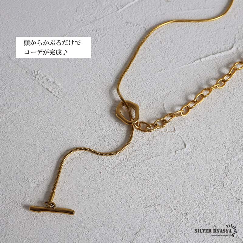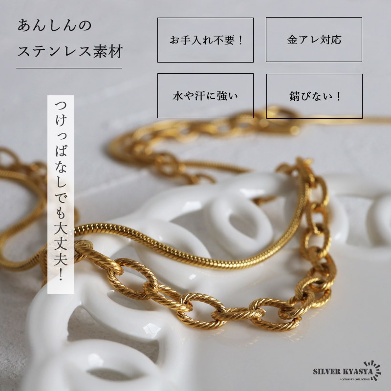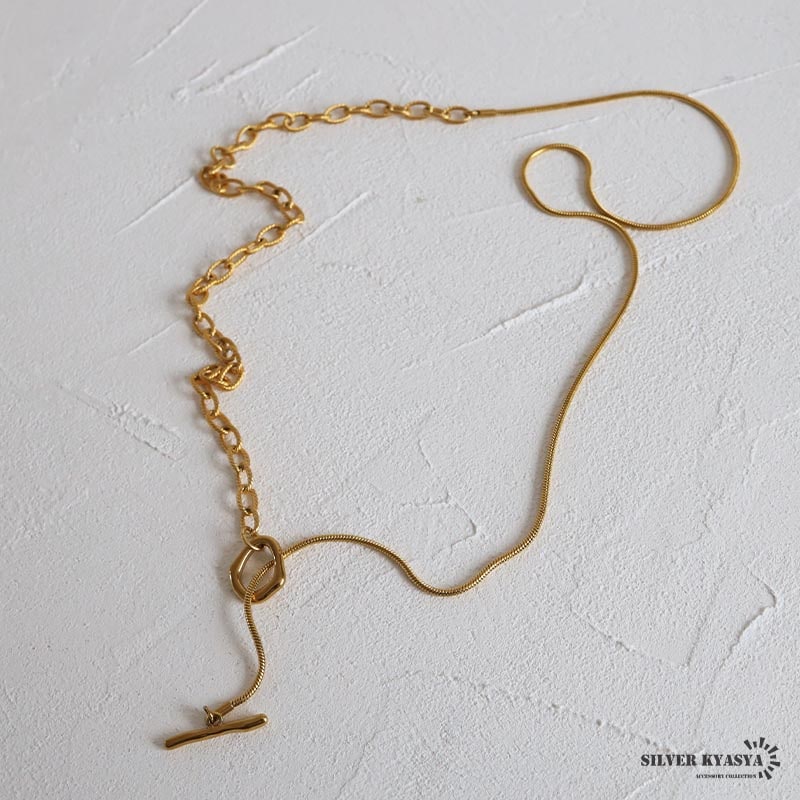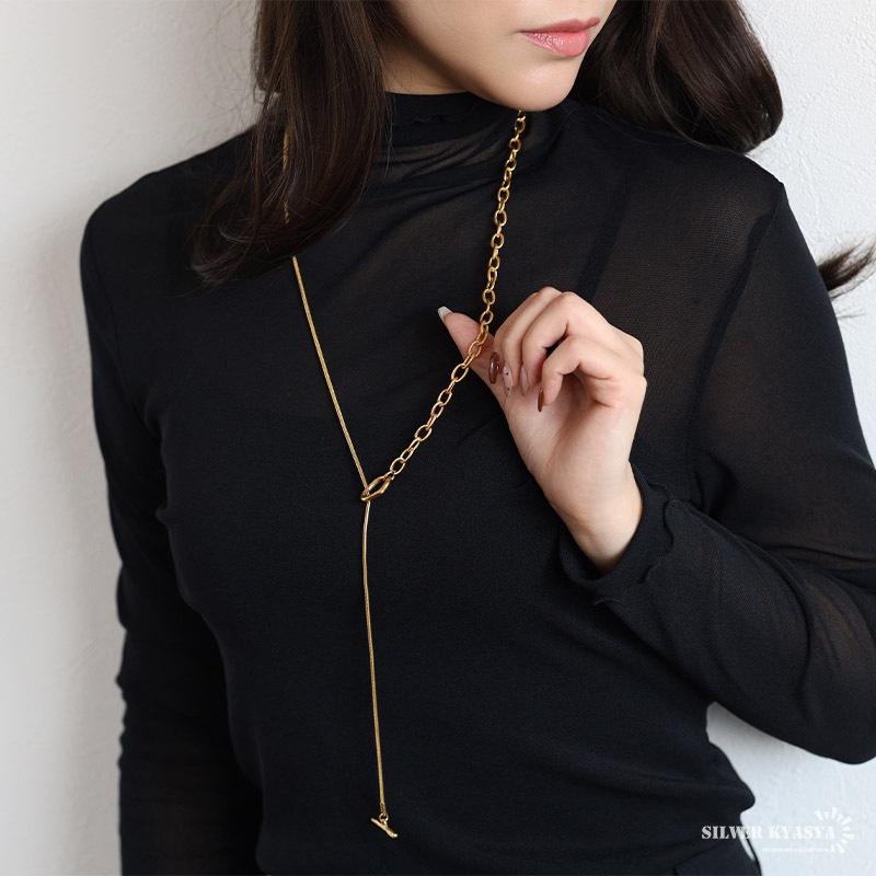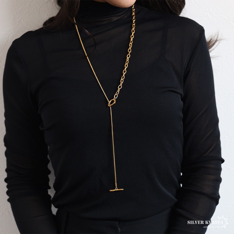 ■ITEM DETAIL ギザギザアズキチェーンとスネークチェーンを組合せたロングチェーンネックレス。ラリエットやチョーカーなど色んなつけ方が楽しめます♪頭からかぶるだけなので簡単に付けれる。ステンレス製なのでつけっぱなしでも問題ございません。 ■安心のステンレスアイテム 頑丈でお手入れも簡単なステンレス製アクセサリー。錆びることもなくサッと拭くだけメンテもかんたん。金属アレルギーが出にくいのもポイントです。 ■ニュアンスデザインのマンテル留め具 普通の輪っかと違いぷっくりと変形したデザインがチャームポイント。 | |