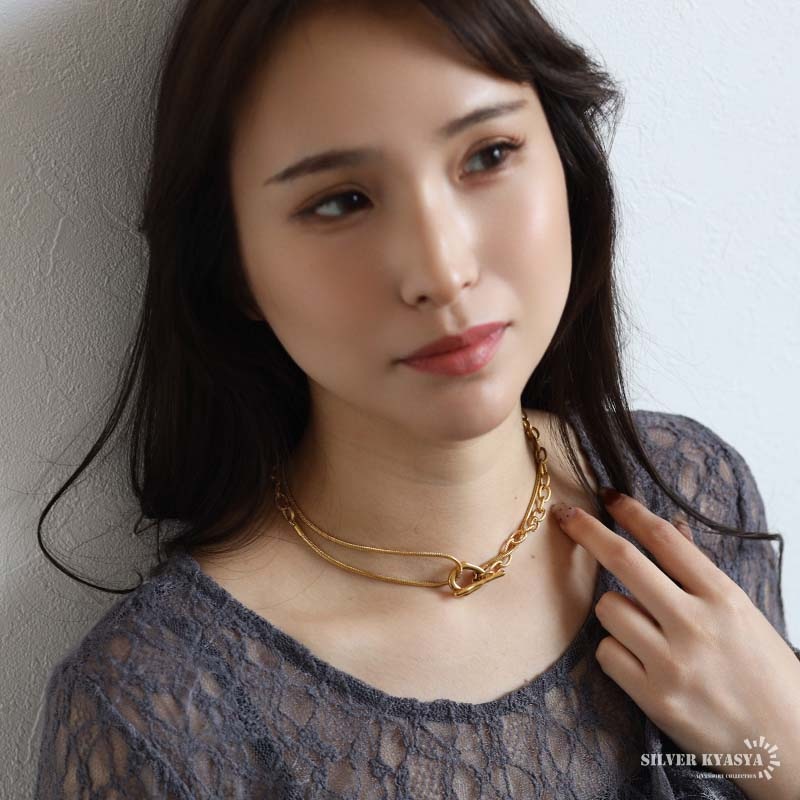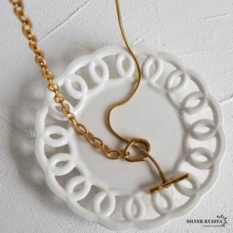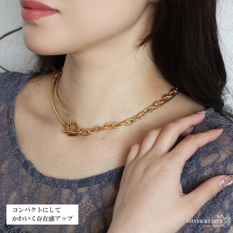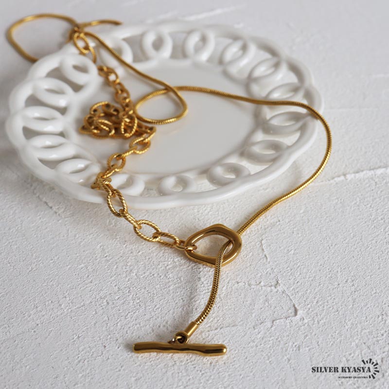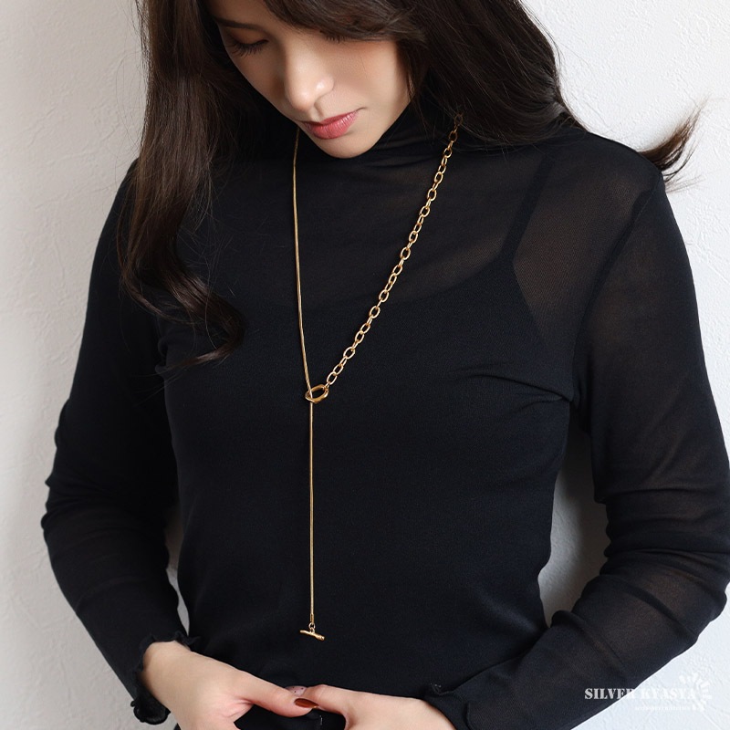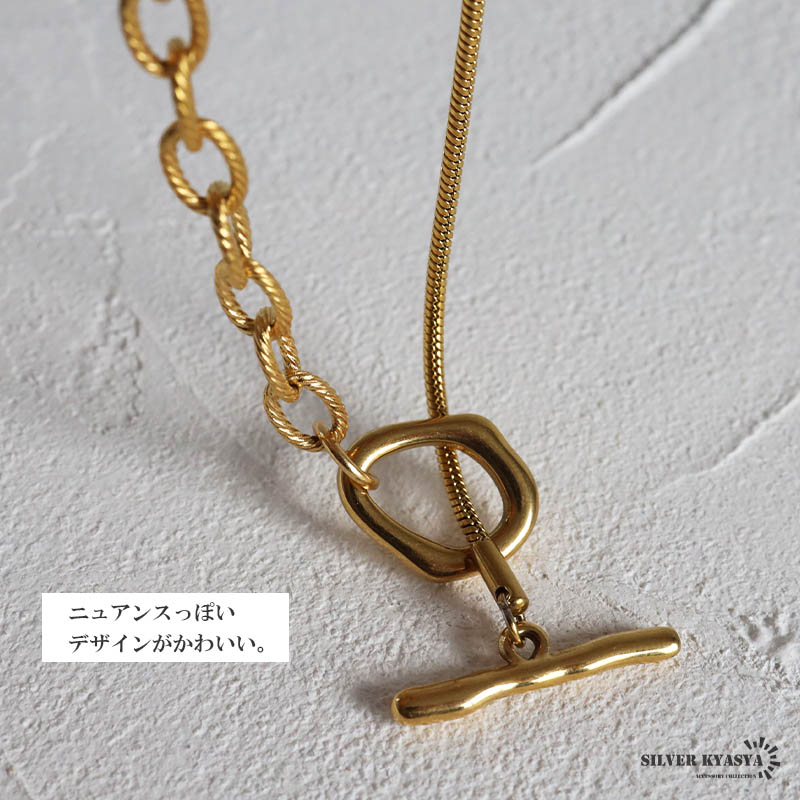 ■ITEM DETAIL ギザギザアズキチェーンとスネークチェーンを組合せたロングチェーンネックレス。ラリエットやチョーカーなど色んなつけ方が楽しめます♪頭からかぶるだけなので簡単に付けれる。ステンレス製なのでつけっぱなしでも問題ございません。 ■安心のステンレスアイテム 頑丈でお手入れも簡単なステンレス製アクセサリー。錆びることもなくサッと拭くだけメンテもかんたん。金属アレルギーが出にくいのもポイントです。 ■ニュアンスデザインのマンテル留め具 普通の輪っかと違いぷっくりと変形したデザインがチャームポイント。 | |