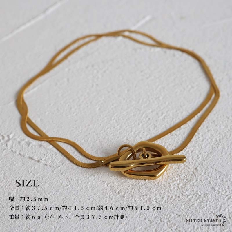 | | 幅:約2.5mm 全長:約37.5cm/約41.5cm/約46cm/約51.5cm 重量:約6g(ゴールド、全長37.5cm計測) |