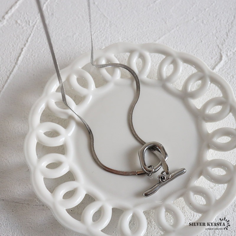 ステンレス シンプル細身のスネークチェーンネックレス。 [n1237]